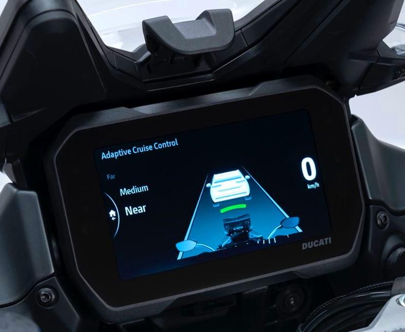 Ещё 2 года назад, в 2018-м, инженеры Ducati проболтались, что адаптивный круиз-контроль (АСС) их компания планирует вывести на рынок на 2020 модельный год. Похоже, это потребовало чуть больше времени или оказалось сложнее, чем ожидалось, но тут пандемия творится, знаете ли…