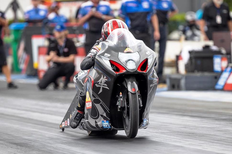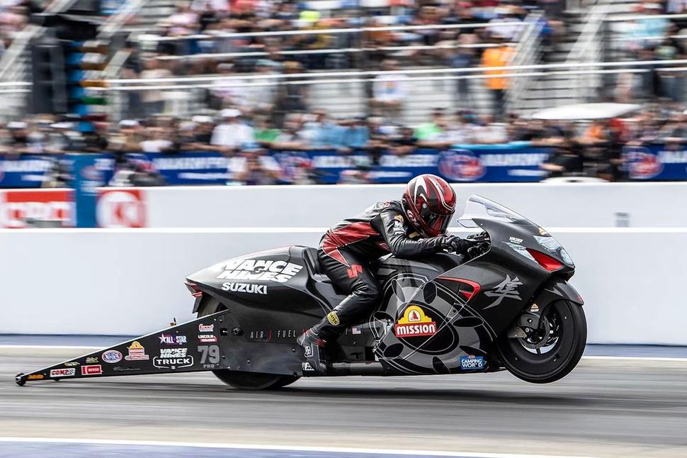 Новый "заводской" (если так можно выразиться) райдер V&H, Гейдж Эррера, выиграл первые три национальных соревнования NHRA (Национальной ассоциации хот-родов) в этом году на основанном на Suzuki дрэг-байке Pro Stock Motorcycle 2023 года. Об этом мотоцикле и пойдёт речь, а рассказать о нём согласились Эндрю Хайнс и Эдди Кравец, оба - бывшие чемпионы Pro Stock Motorcycle, сейчас управляющие гоночной командой.